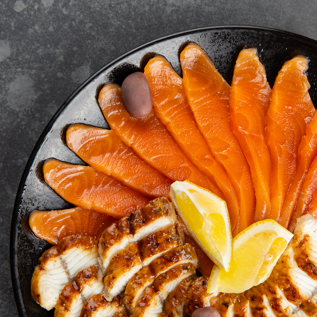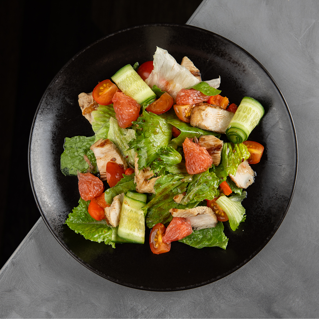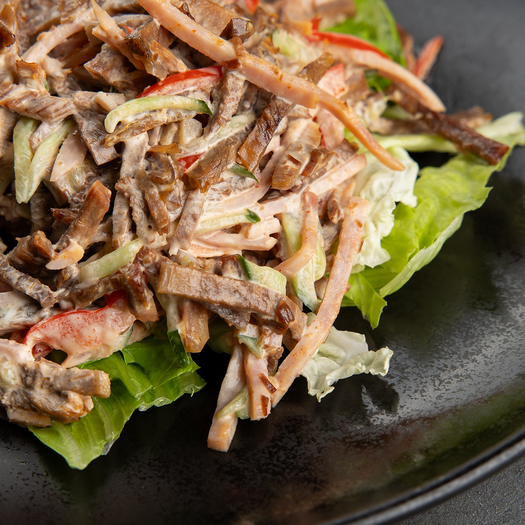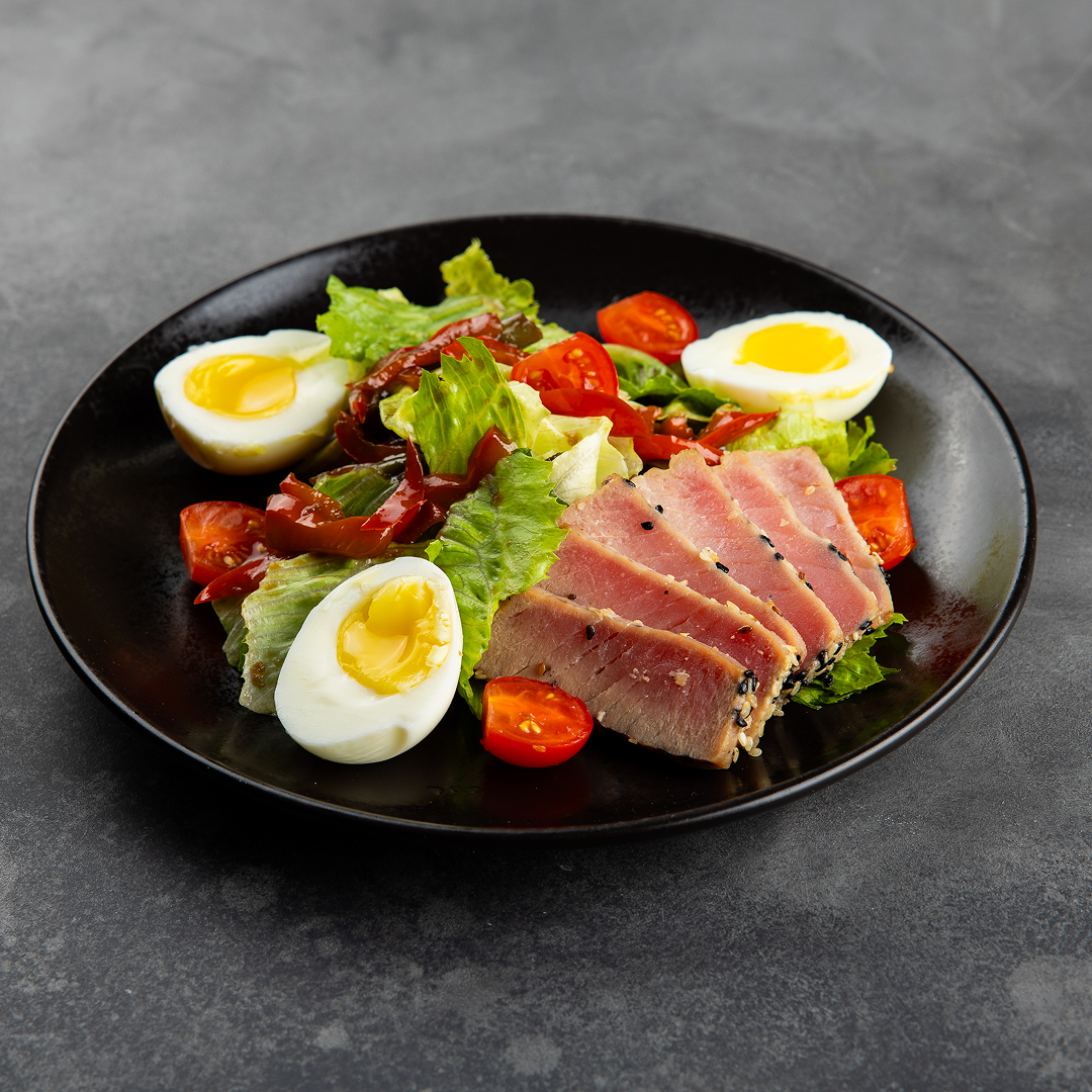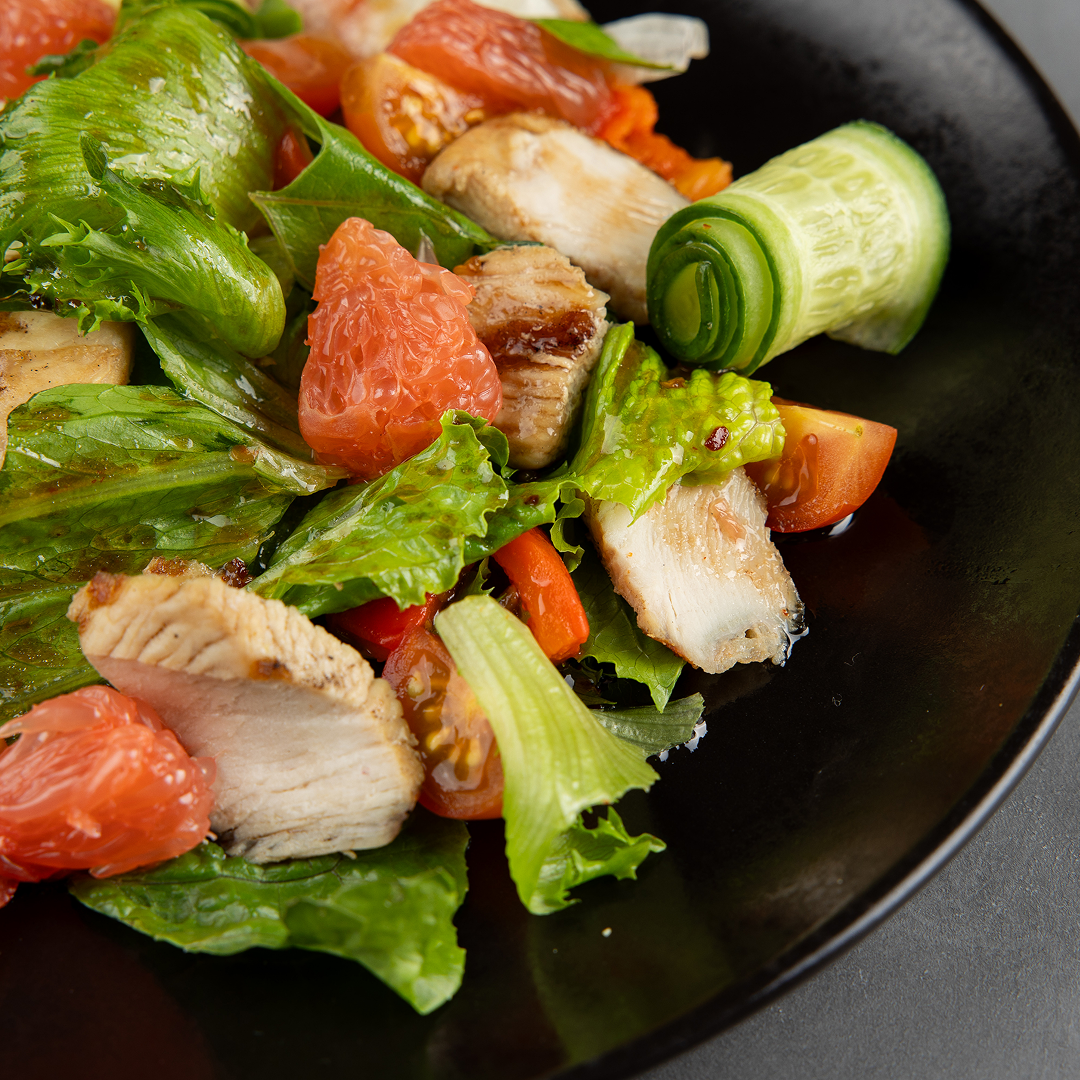 лосось филе | кальмары | огурец | томаты вяленые | черри | микс салата | арахис