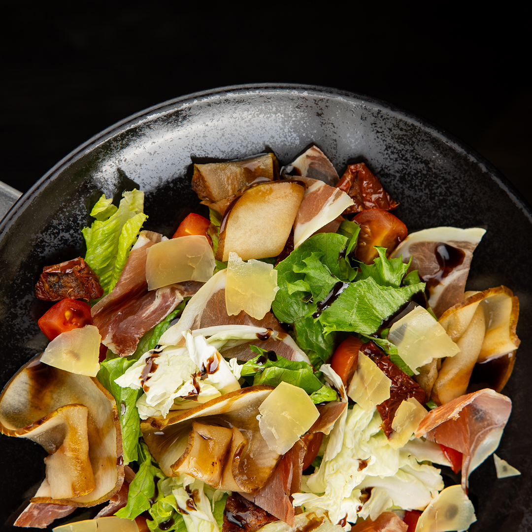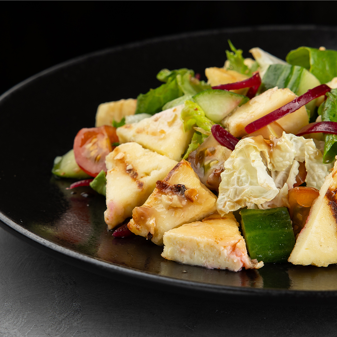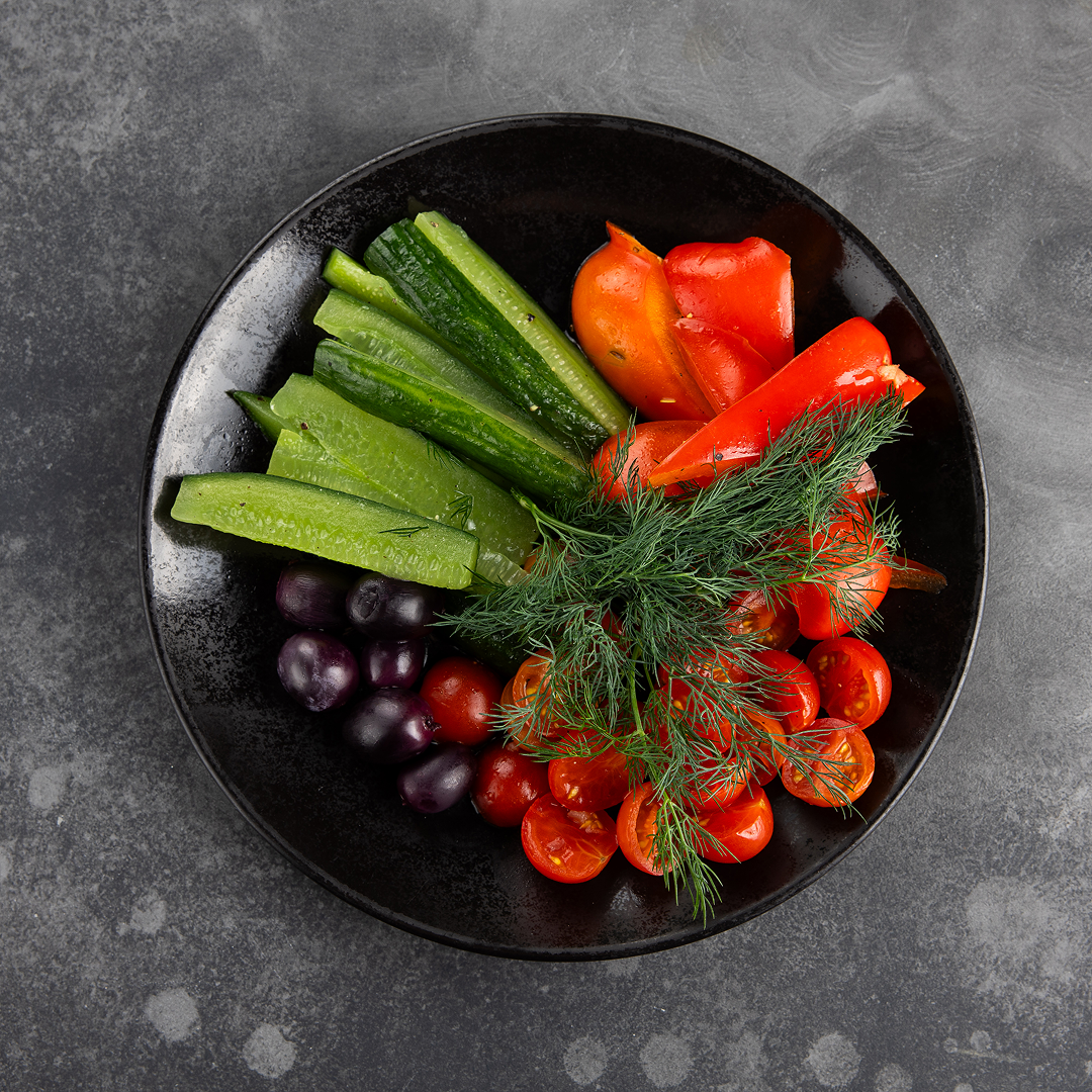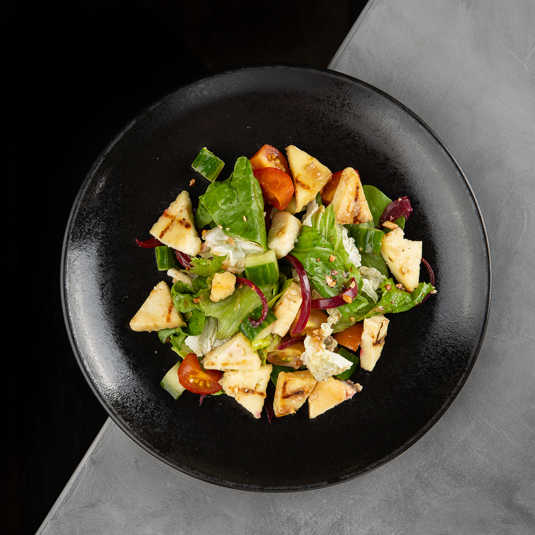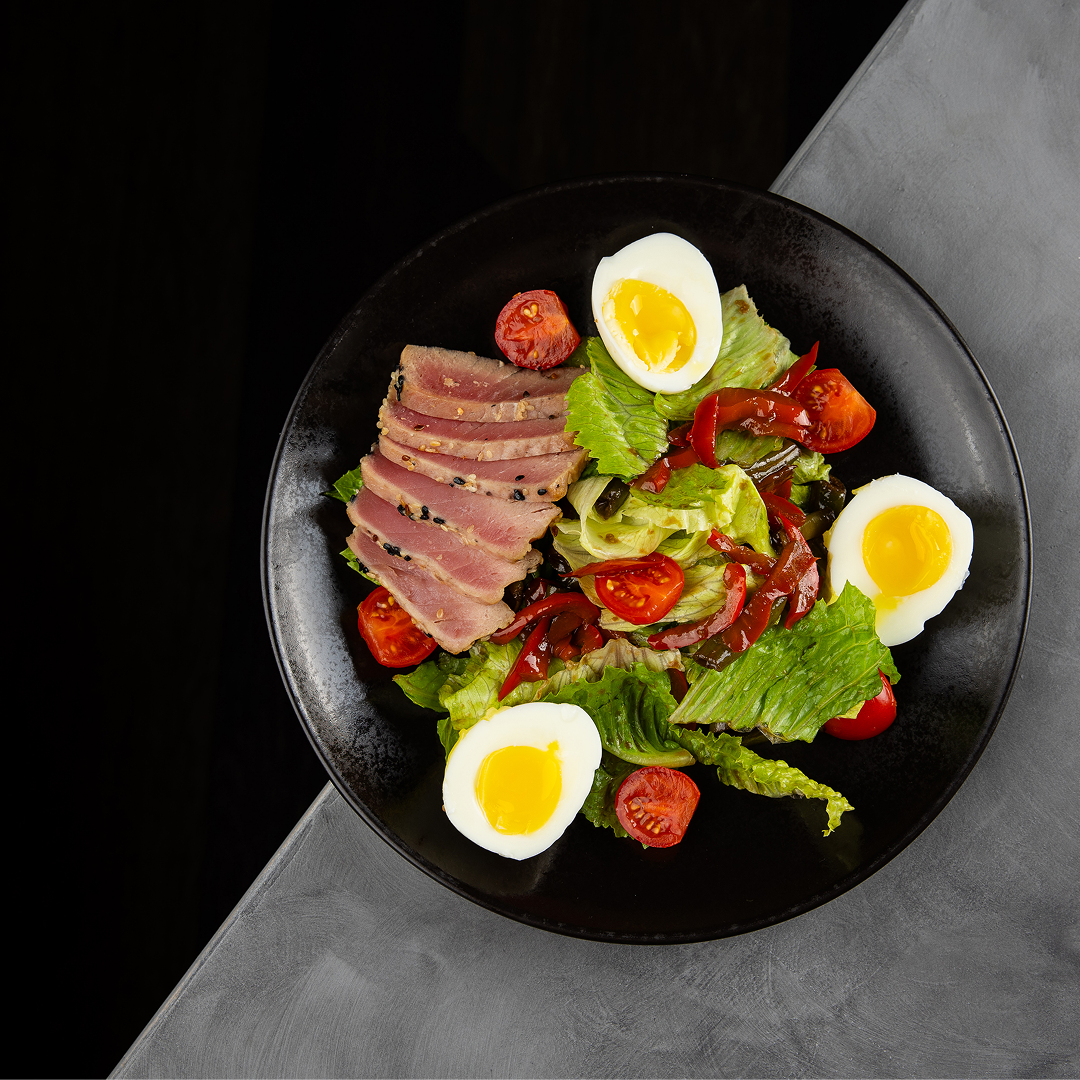 лосось филе | кальмары | огурец | томаты вяленые | черри | микс салата | арахис