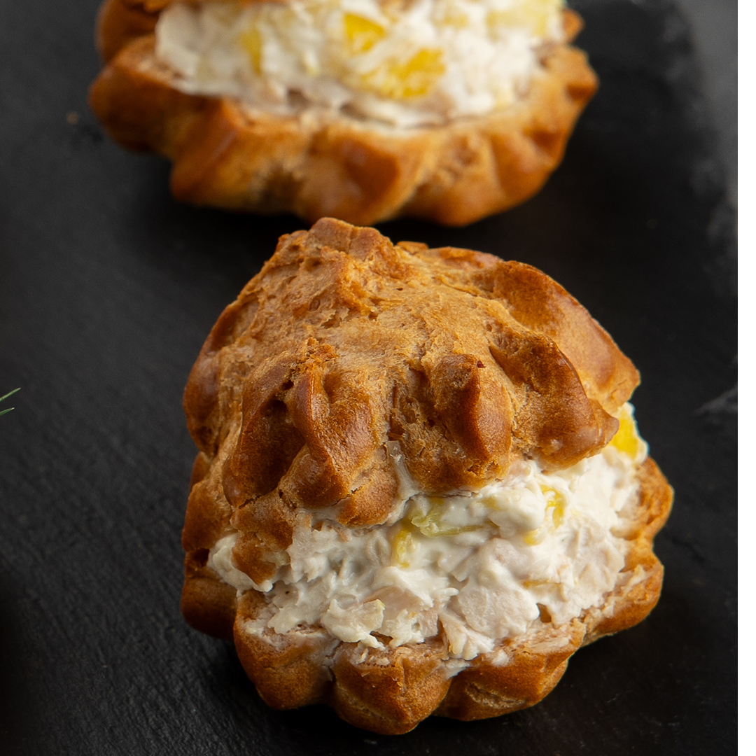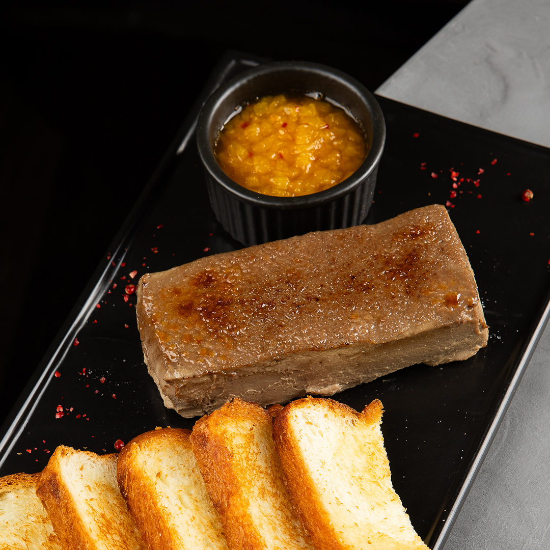 печень куриная | молоко | коньяк | лук | бриошь | персиковый чатни