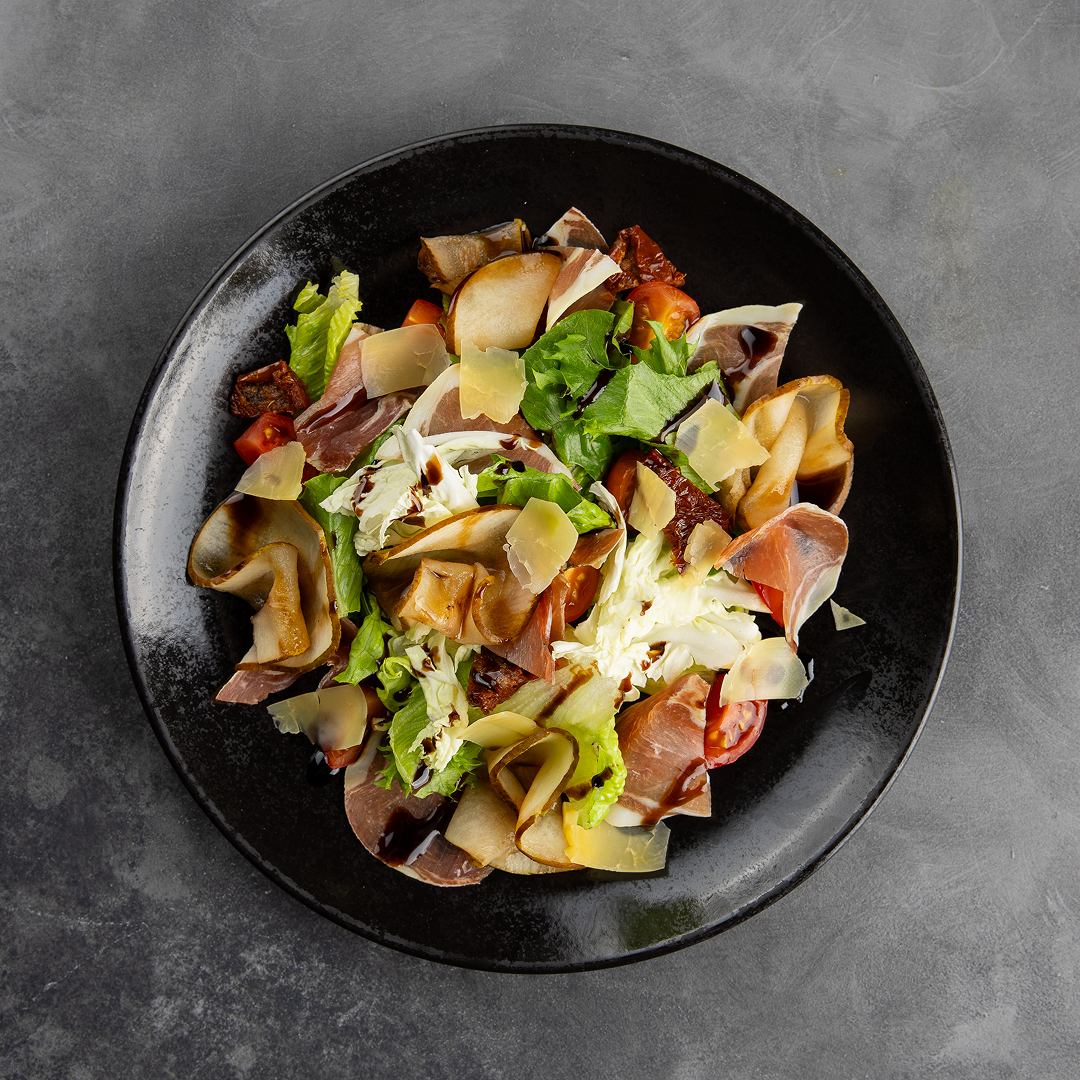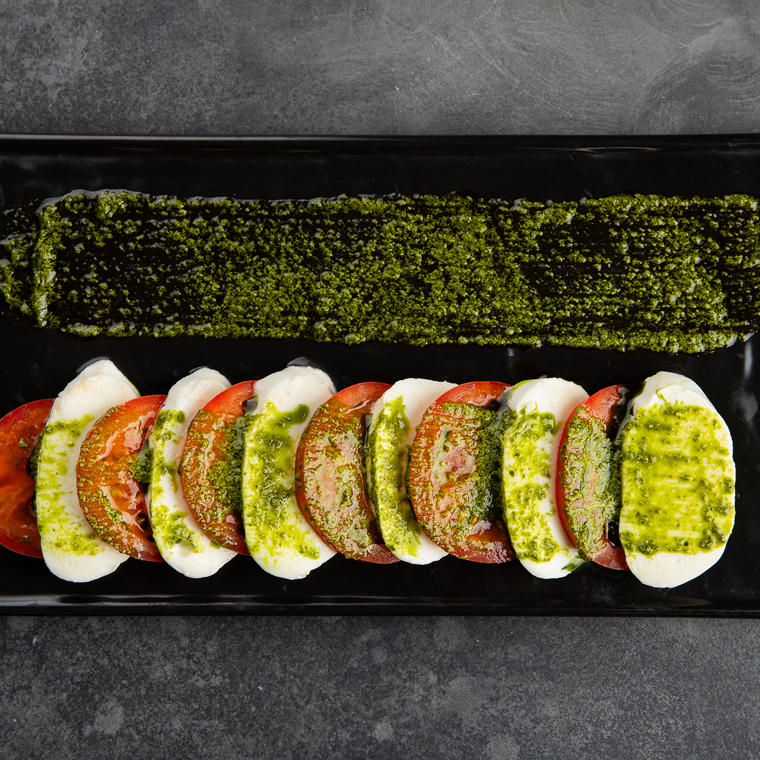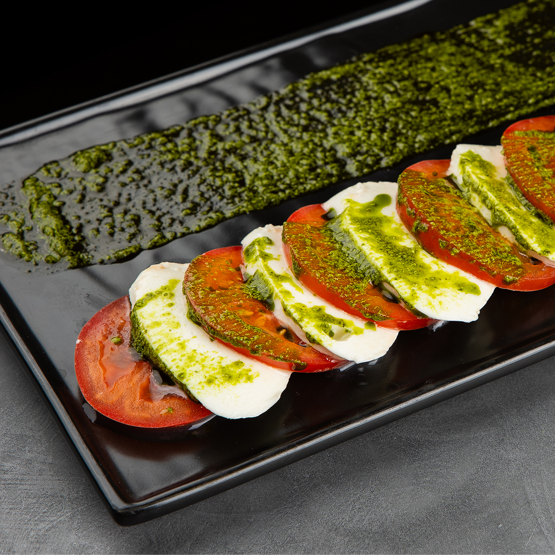 багет | томаты свежие | томаты вяленные | горчица | сливки | моцарелла | бальзамик | наршараб