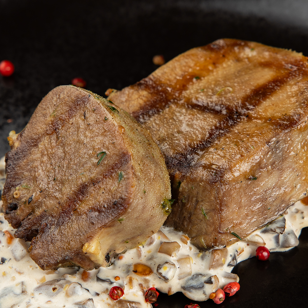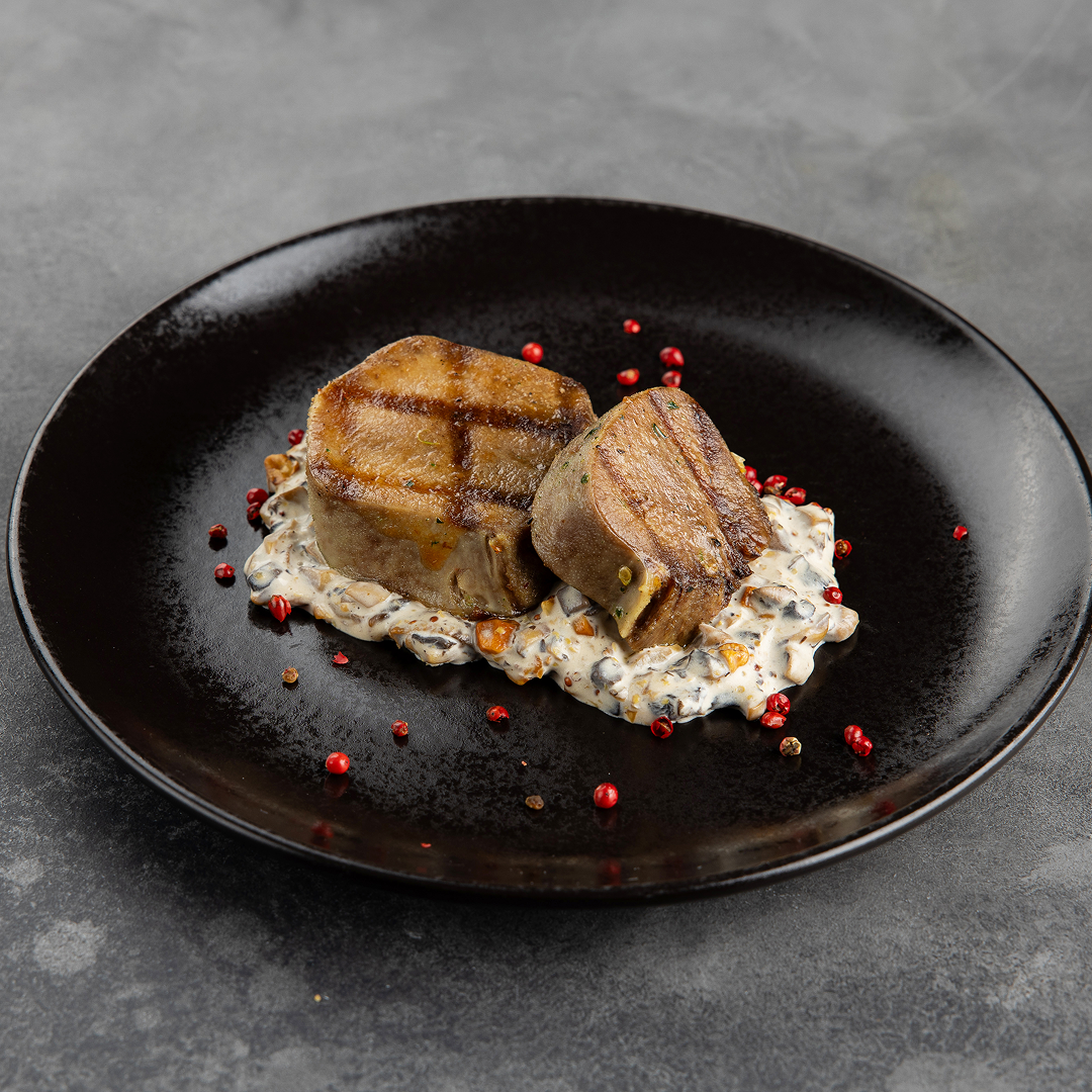 язык на гриле с соусом фисташка | шампиньоны | сливки | дижонская горчица