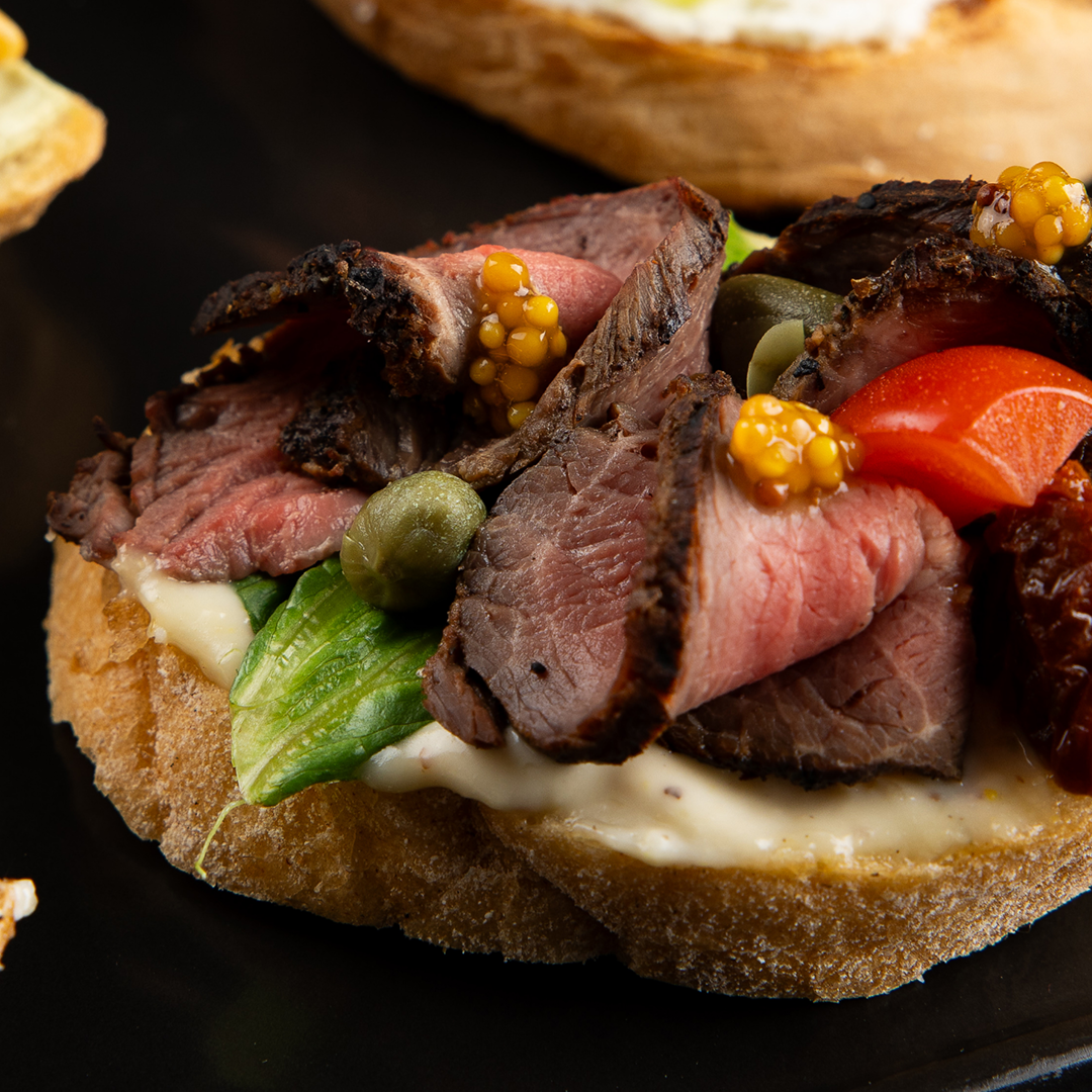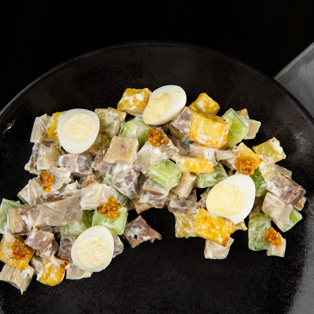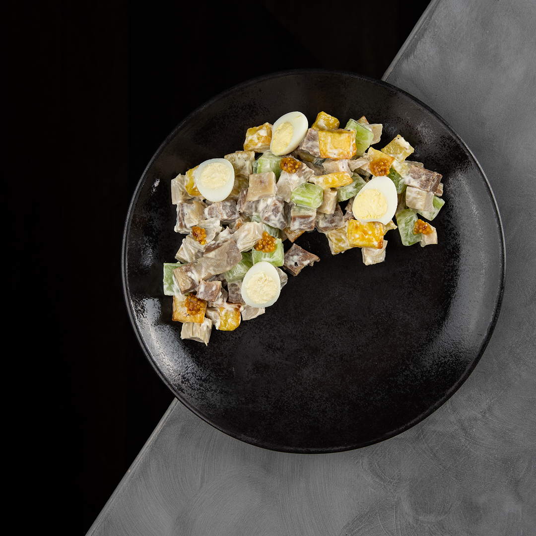 говядина | каперсы | огурец маринованный | лук | соль | перец | дижонская горчица | желток перепелиного яйца