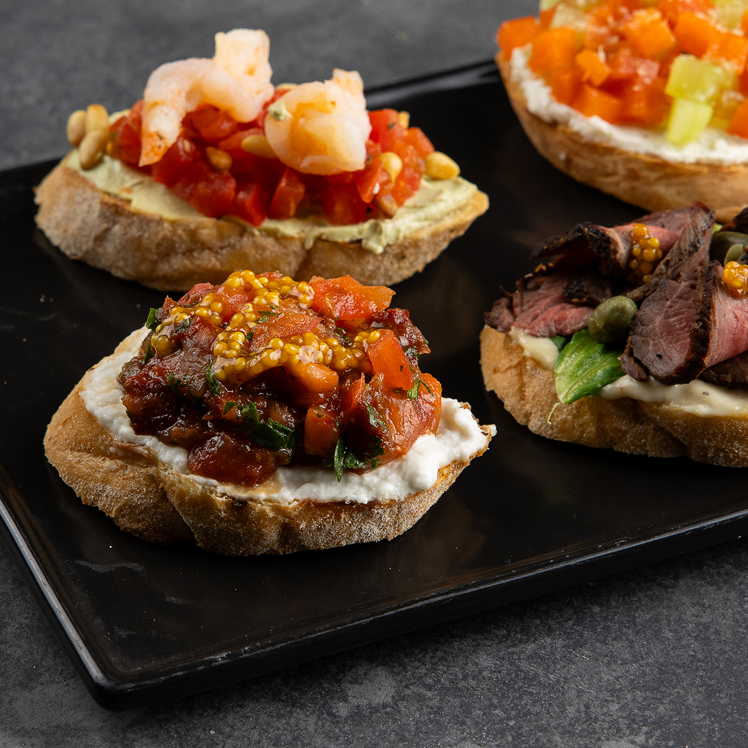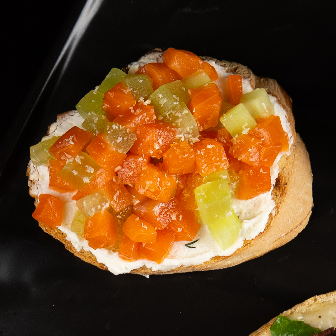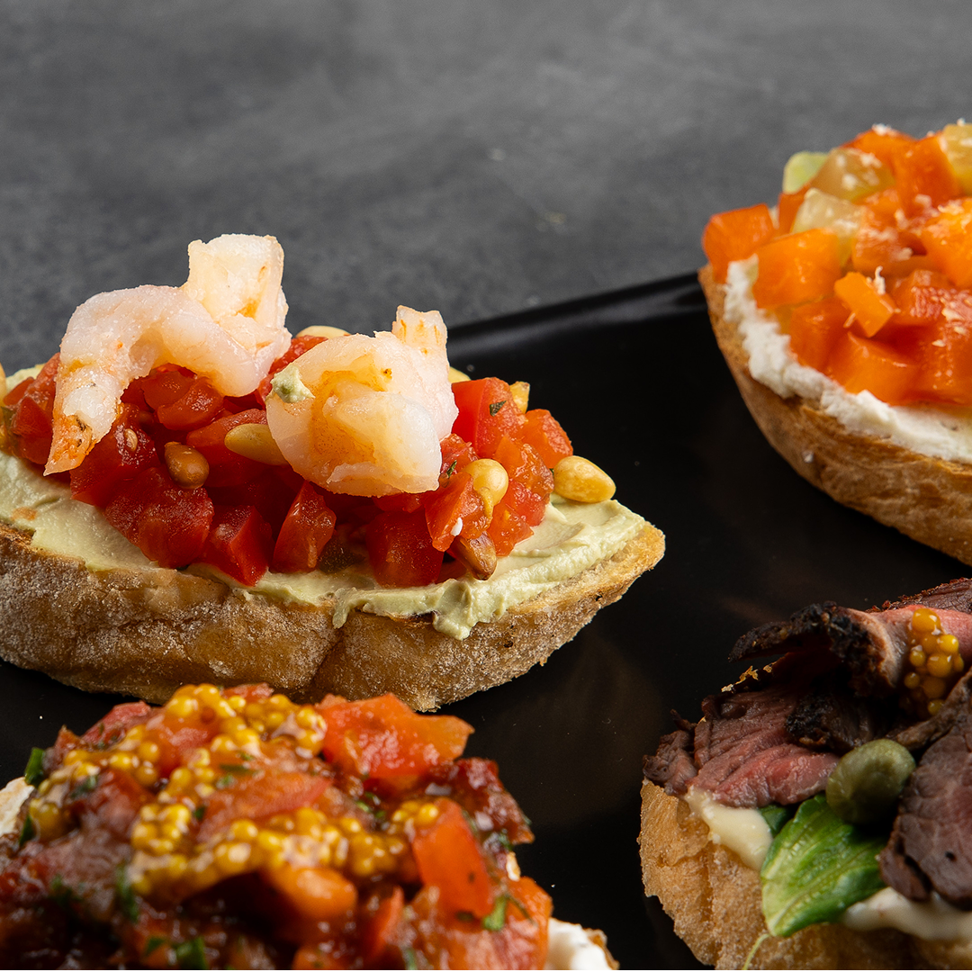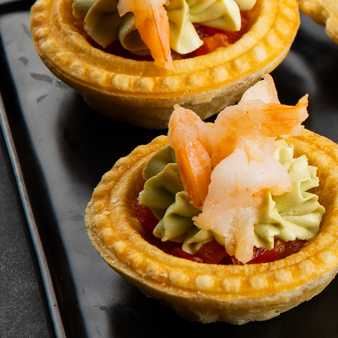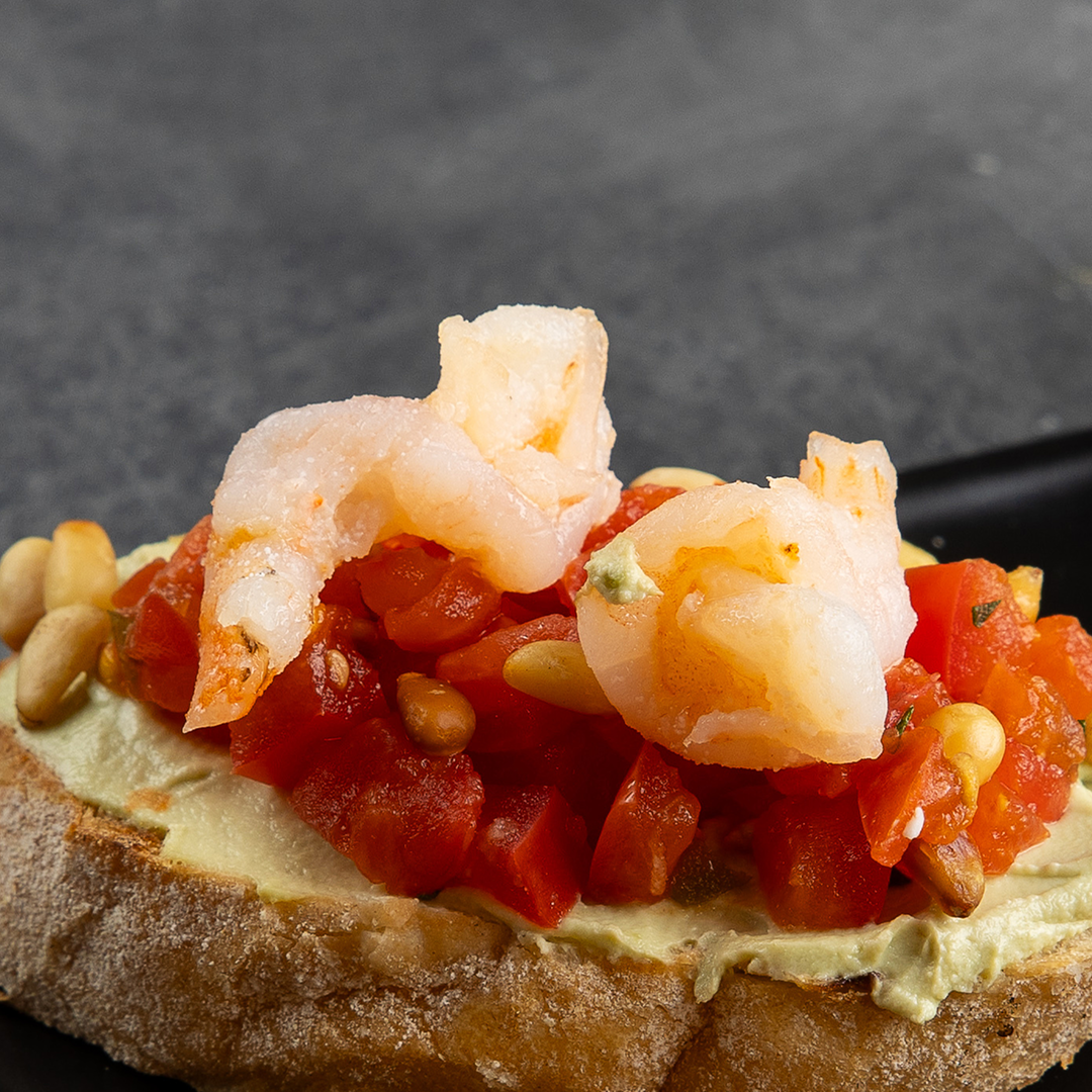 багет | кремчиз | авокадо | томатная сальса | креветка | орешки