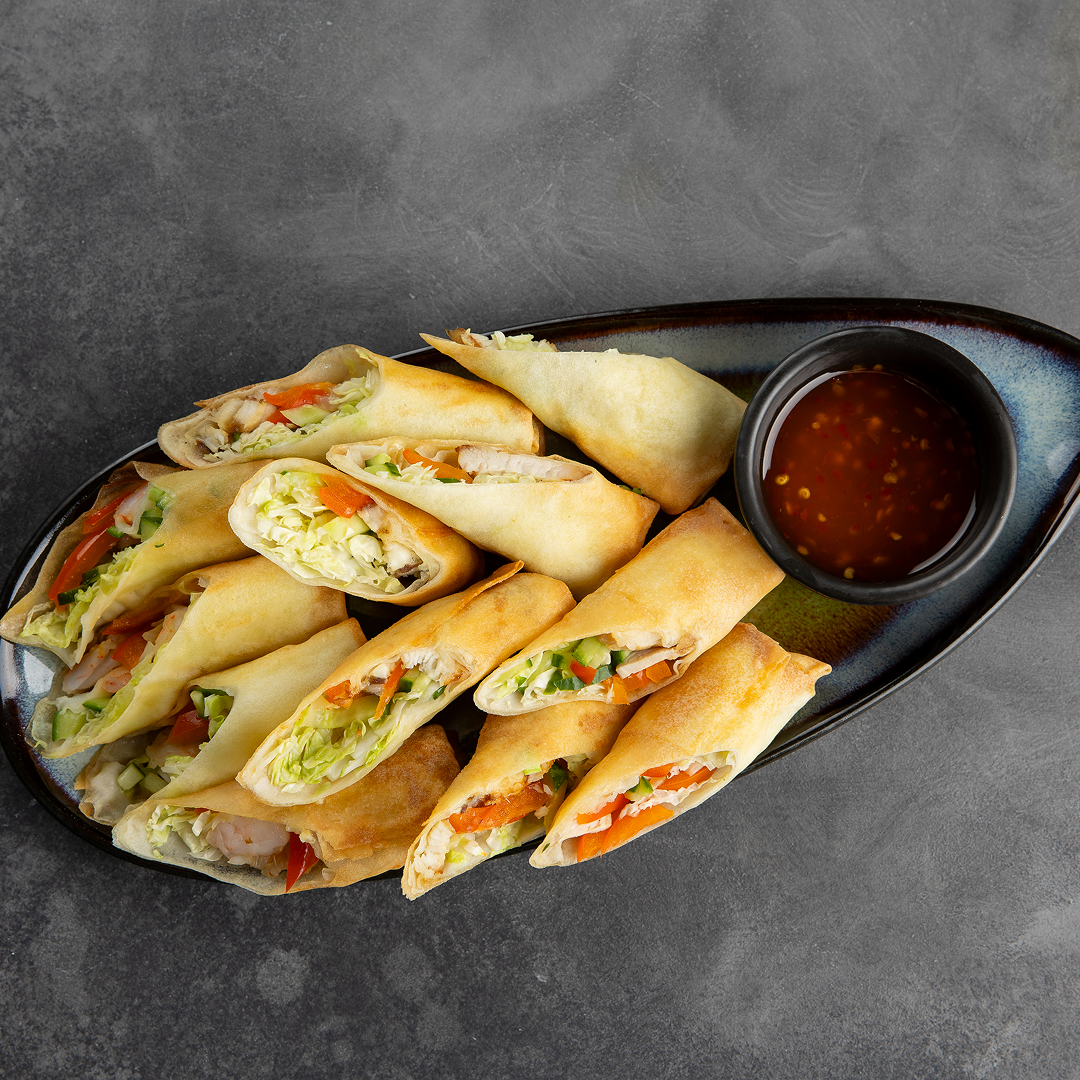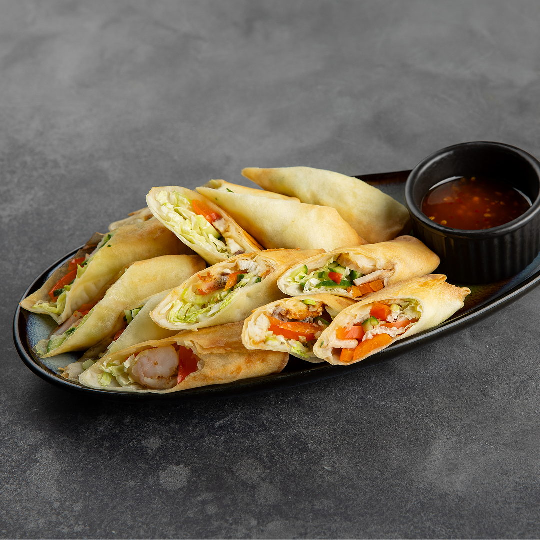 рисовое тесто | соус сладкий Чили | курица/угорь/креветка в разных рулетиках